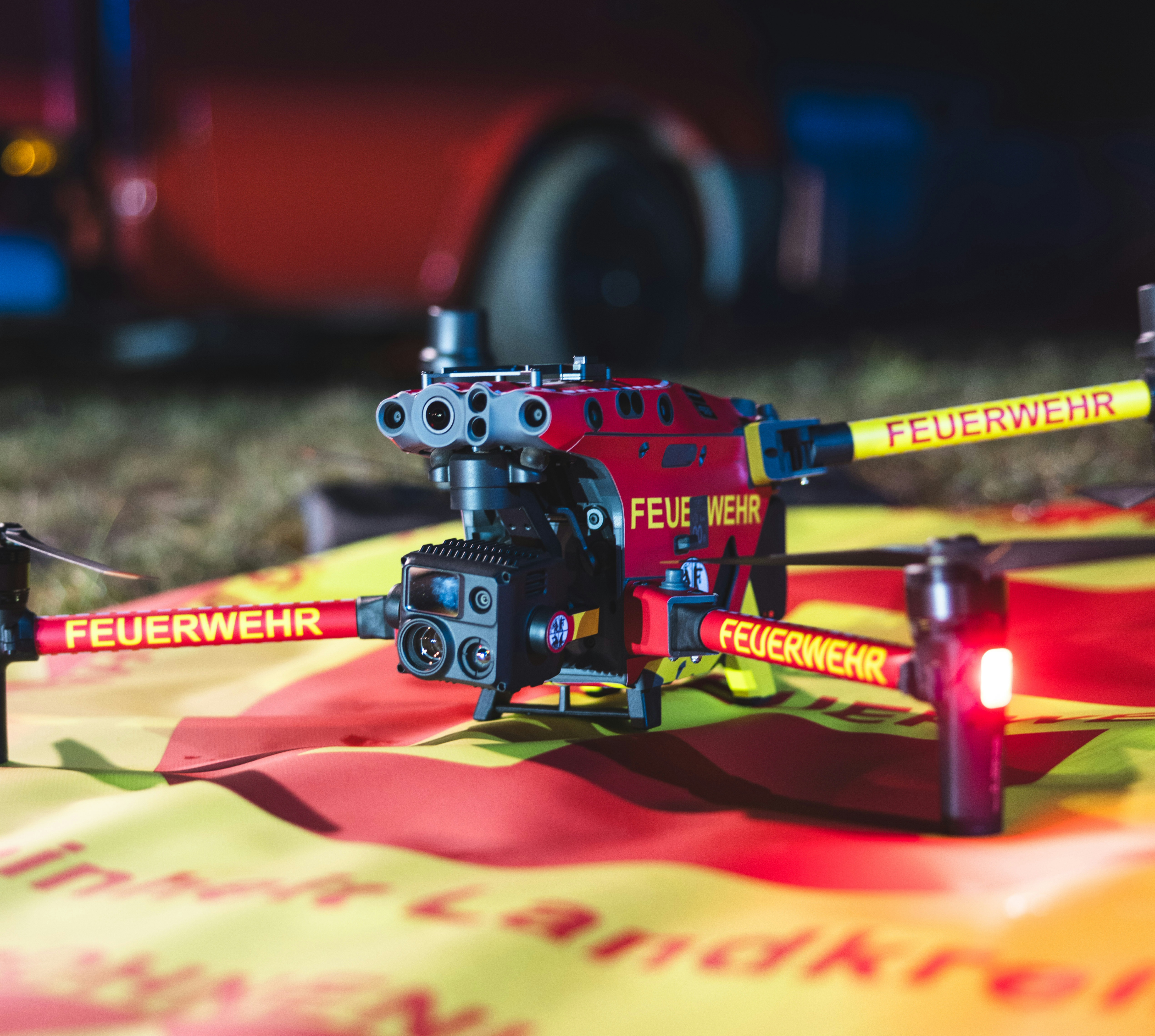 Die Drohneneinheit flog im gesamten Einsatz rund 16 Stunden. Dabei lieferte sie regelmäßig Livebilder für die Besprechungen der Einsatzleitung sowie der Polizei, koordinierte die Löschmaßnahmen aus der Luft und dokumentierte die Lage.