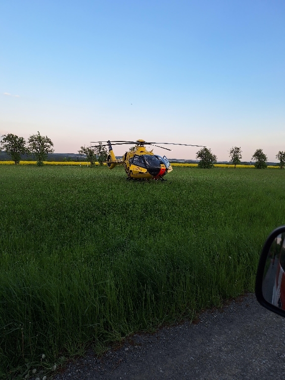 Die Feuerwehr Hohenleuben wurde am Abend des 02.05.2025, um 19:12 Uhr, zu einer Absicherung Hubschrauberlandung in die Stadt alarmiert worden.