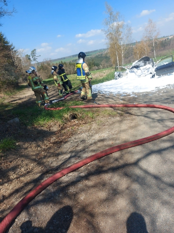 An der Einsatzstelle angekommen fanden die Kameraden einen Pkw, welcher im vorderen Bereich im Vollbrand stand, direkt an einem Waldstück vor. Der Fahrer stand unverletzt neben dem brennenden Fahrzeug. EinTrupp ging umgehend unter schweren Atemschutz zur Brandbekämpfung vor. Nachdem das Fahrzeug soweit abgelöscht war wurde es mittels Schaum gegen ein eventuelles Aufflammen abgedeckt.