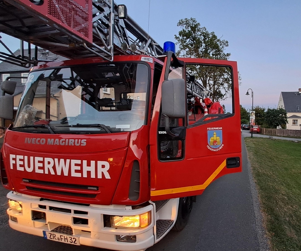 Am Abend des 23.08.2024 wurde die Feuerwehr Hohenleuben zur H01.1 Tierrettung alarmiert. An der Einsatzstelle angekommen fanden wir eine Katze auf einem Schornstein vor. Da weder per Drehleiter, noch per Steckleiter, die Katze erreicht werden konnte, wurde ein Zugang über eine Dachkucke gewählt.