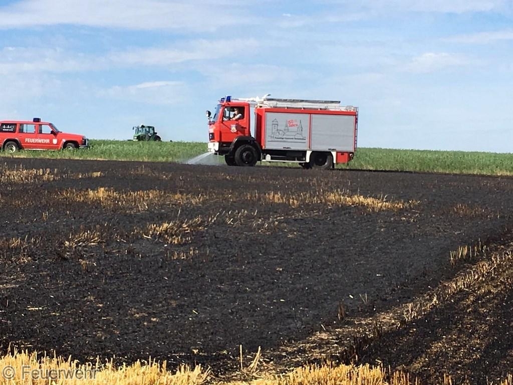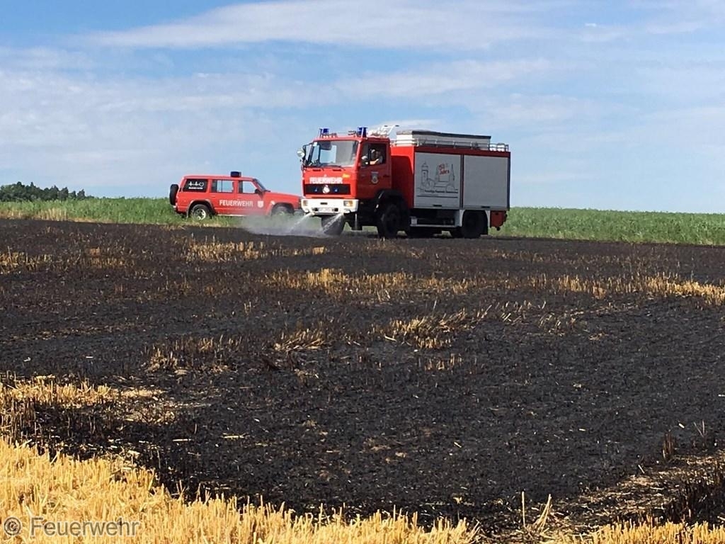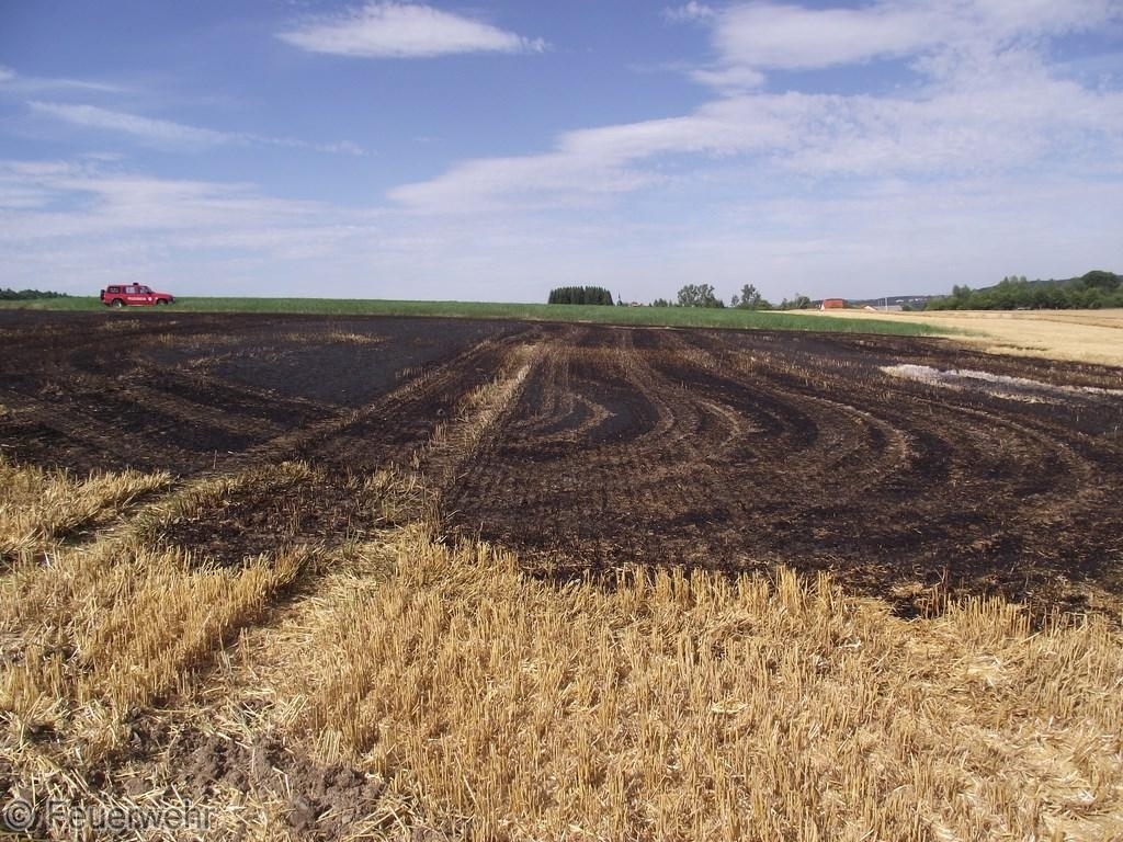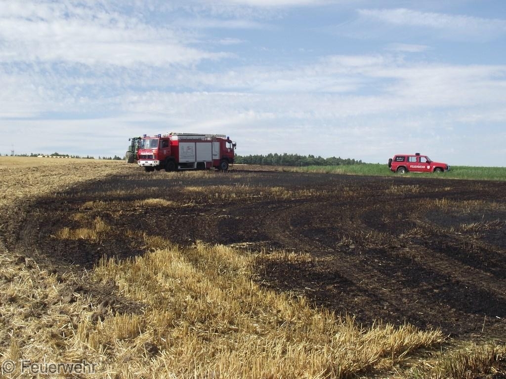 Am heutigen Nachmittag um 16:45 Uhr wurde die Feuerwehr Hohenleuben zur überörtlichen Löschhilfe zu einem größeren Feldbrand nach Steindorf alarmiert. Ein Feld, welches gerade abgeerntet wurde, hatte Feuer gefangen. Es stand auf einer Breite von zirka 800 Metern in Flammen. Wir waren hier mit dem Einsatzleitwagen und dem Tanklöschfahrzeug 16/24 im Einsatz.Weitere Kameraden verblieben auf Bereitschaft im Gerätehaus. Desweiteren waren die Feuerwehr Weida, Feuerwehr Steinsdorf sowie der Kreisbrandmeister Weida im Einsatz.