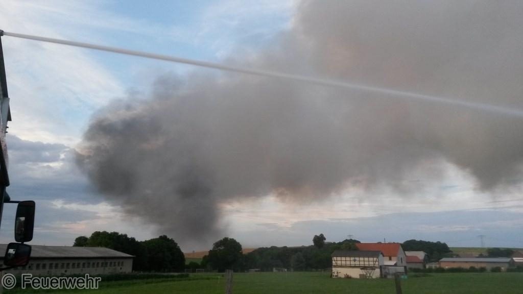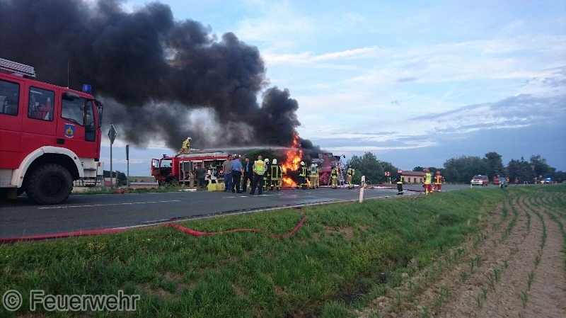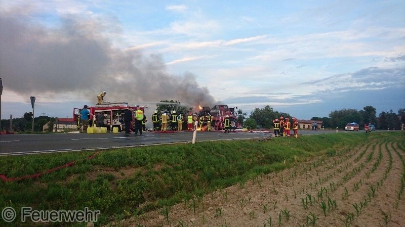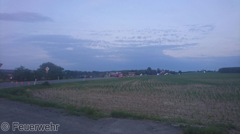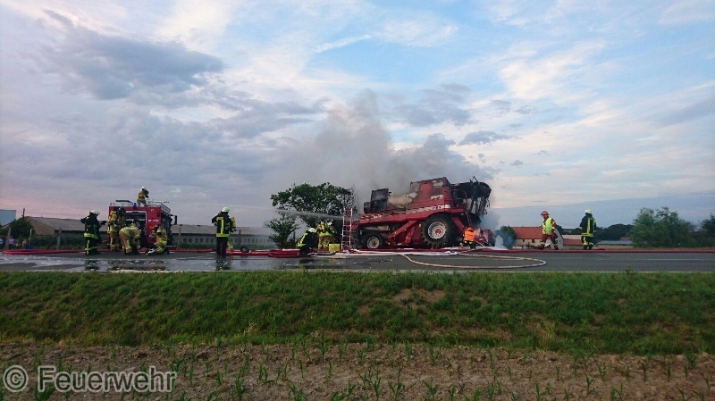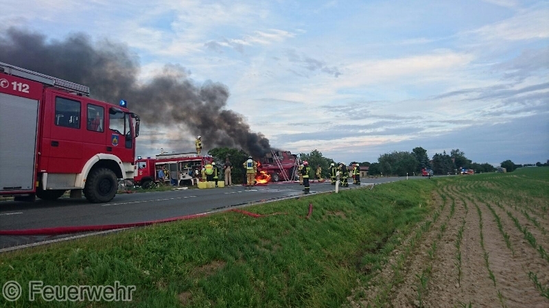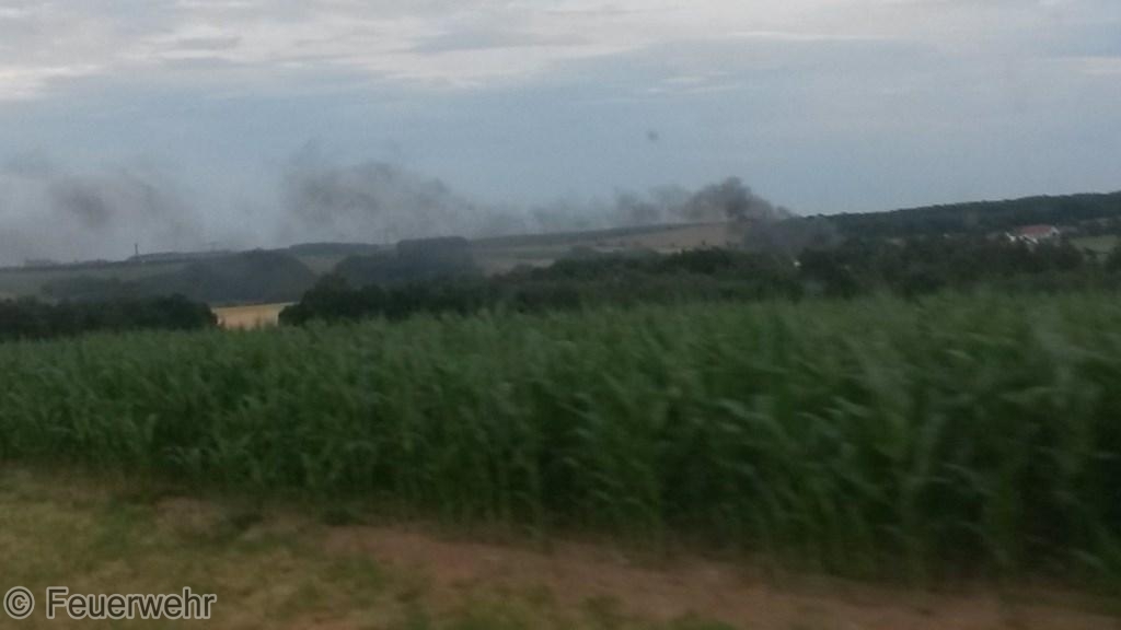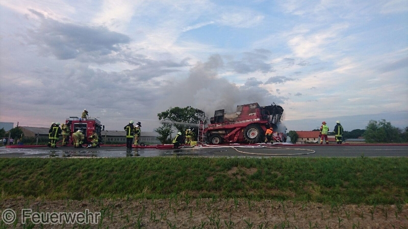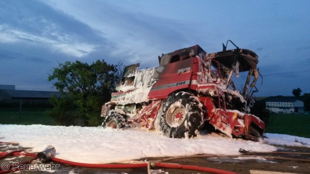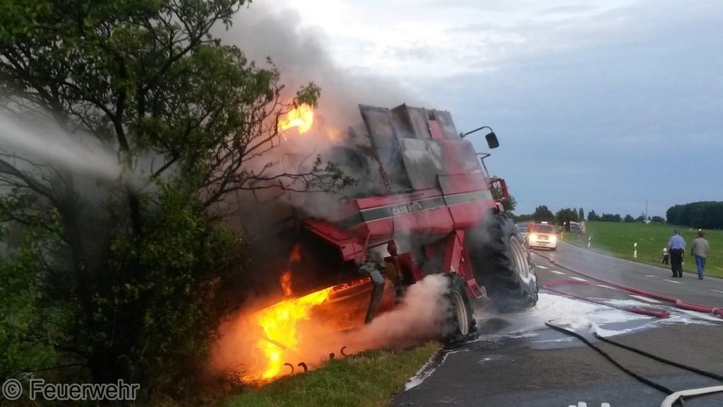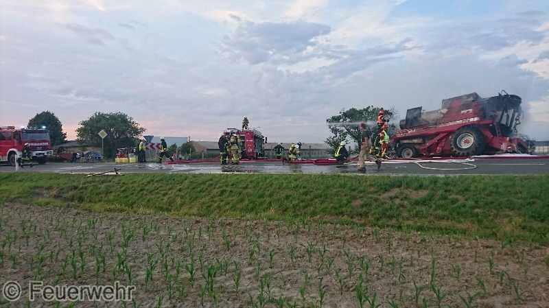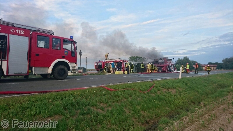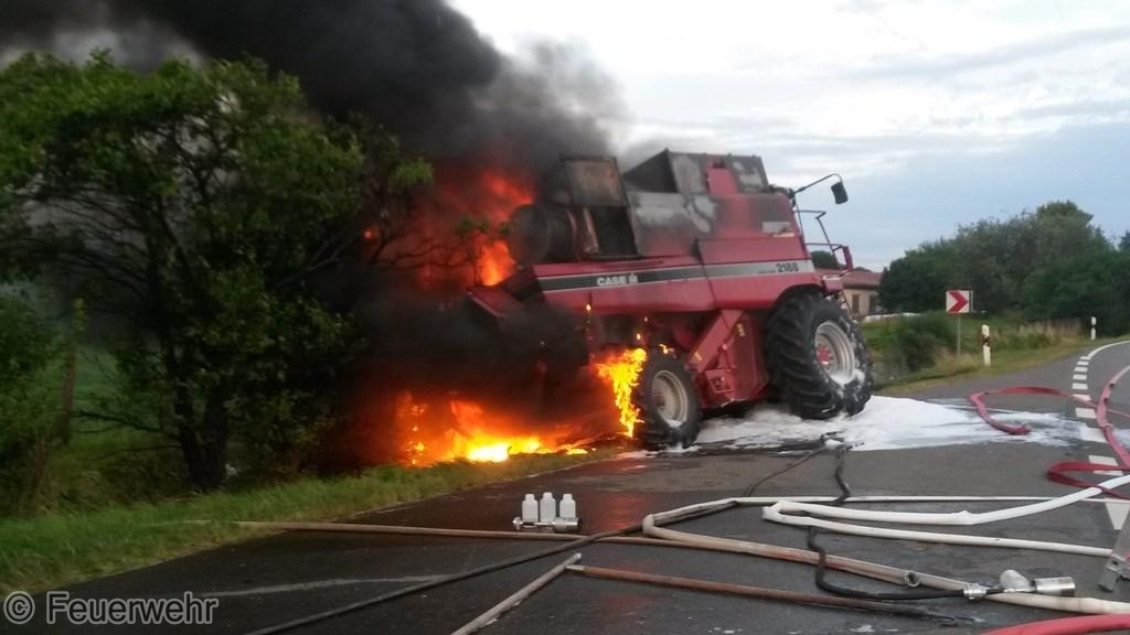 Die Feuerwehren Wildetaube und Hohenleuben wurden am Abend des 11.07.2016 zu einem Mähdrescherbrand auf die Bundesstraße 92 Höhe Wittchendorf gerufen. Bereits bei Ausfahrt aus dem Gerätehaus konnte der Leitstelle Gera Lage auf Sicht per Funk gemeldet werden.