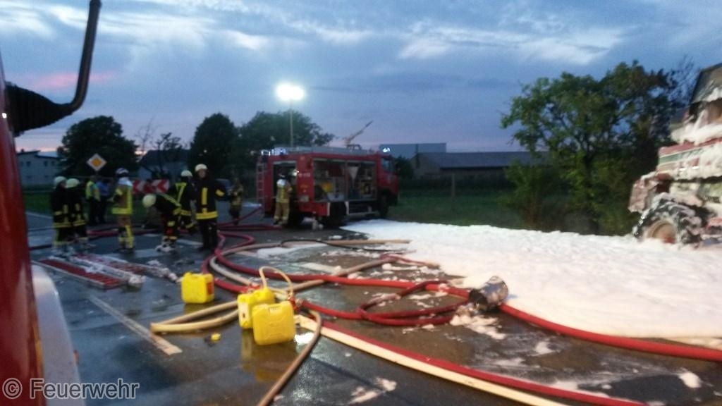 Nachdem das Feuer unter Kontrolle war, wurde mit einem massiven Schaumangriff begonnen. Während der gesamten Löscharbeiten waren 3 Trupps unserer Feuerwehr unter schwerem Atemschutz im Einsatz.