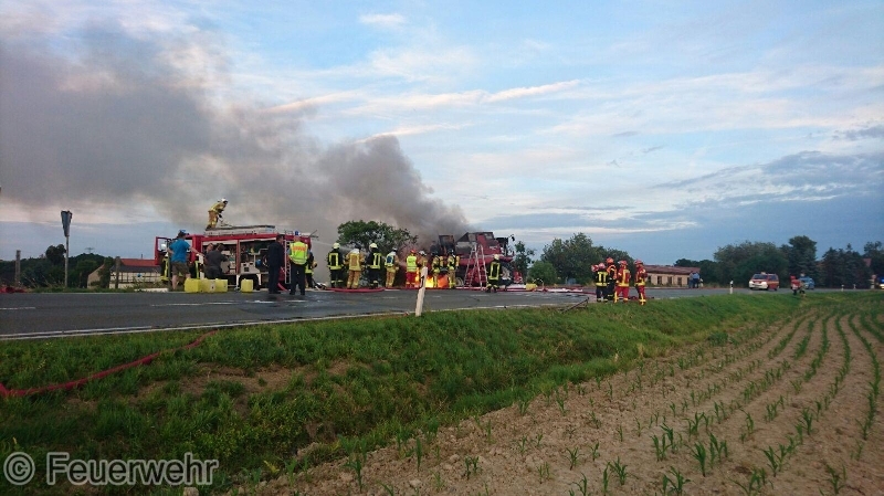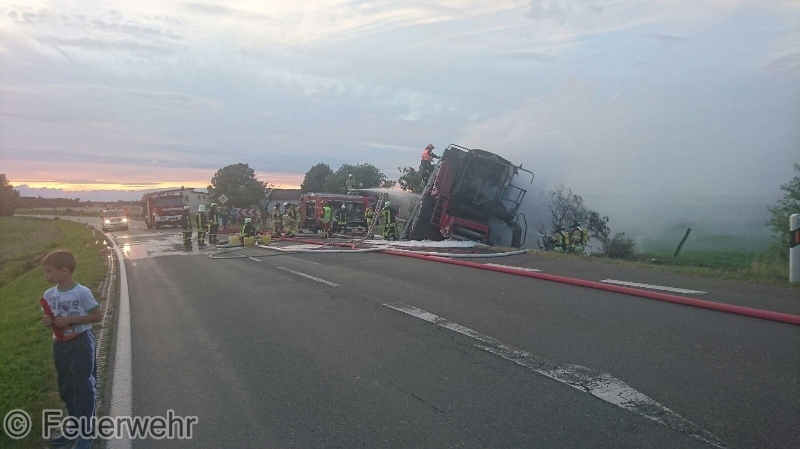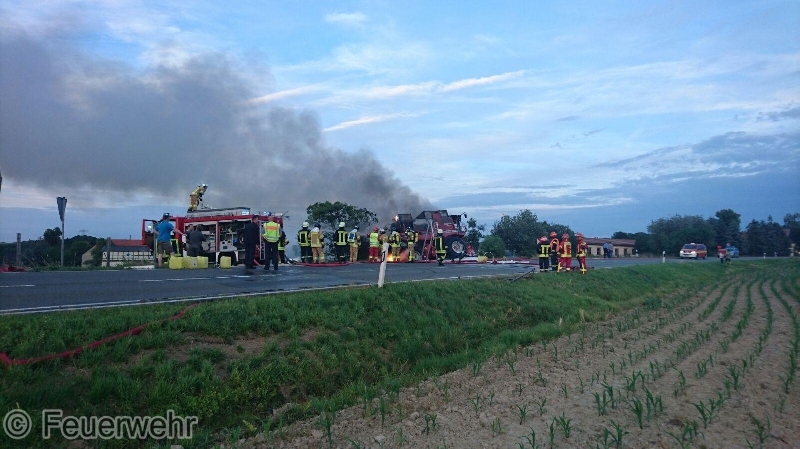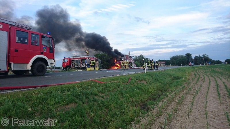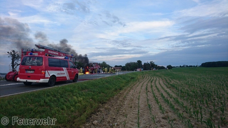 Glücklicherweise konnte sich der Fahrzeugführer unverletzt aus dem Fahrzeug befreien. Während der Löscharbeiten blieb die Bundesstraße 92 für mehrere Stunden voll gesperrt.