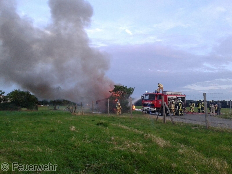 An der Einsatzstelle bestätigte sich die Lage und über das Tanklöschfahrzeug und das Hilfeleistungslöschgruppenfahrzeug wurde sofort unter schwerem Atemschutz mit der Brandbekämpfung begonnen. Parallel dazu baute die Feuerwehr Wildetaube aus Wittchendorf eine konstante Löschwasserversorgung auf.