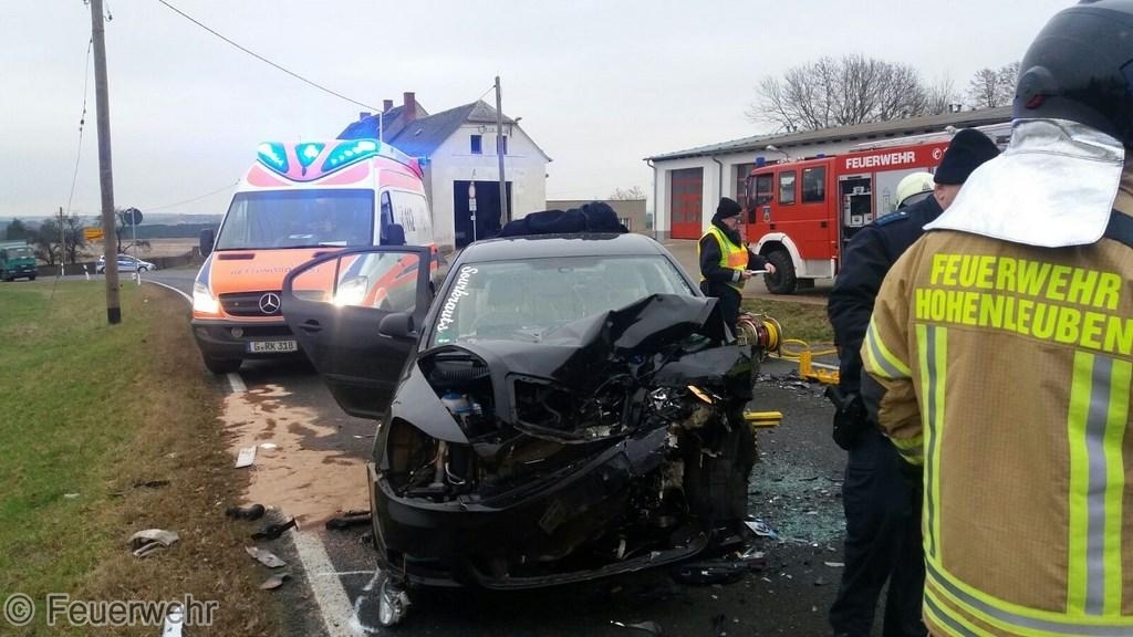 Am heutigen Nachmittag wurden der Kreisbrandmeister Weida sowie die Feuerwehr Hohenleuben mittels Funkmeldempfänger und Sirene zu einem schweren Unfall Höhe der Feuerwehr alarmiert. Mit dem Alarmstichwort "VKU 2 x Pkw Frontalzusammenstoß mit eingeklemmten Personen, Höhe Feuerwehr" war mit dem schlimmsten zu rechnen.