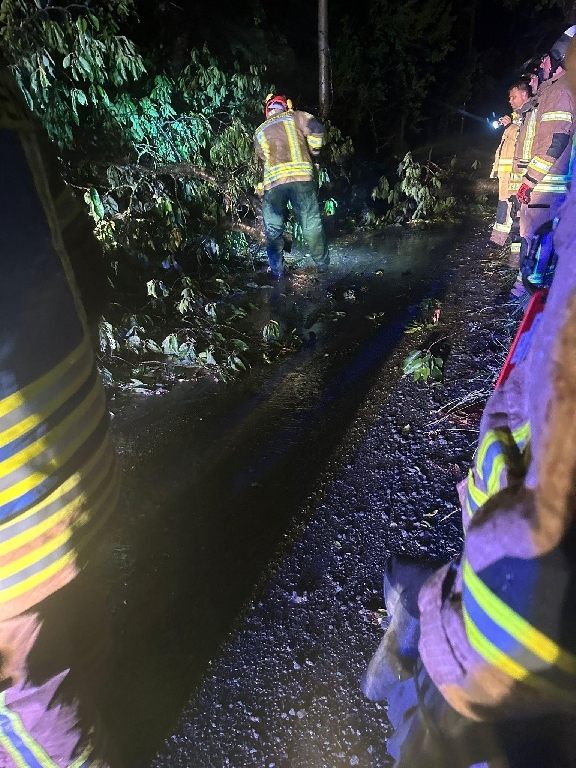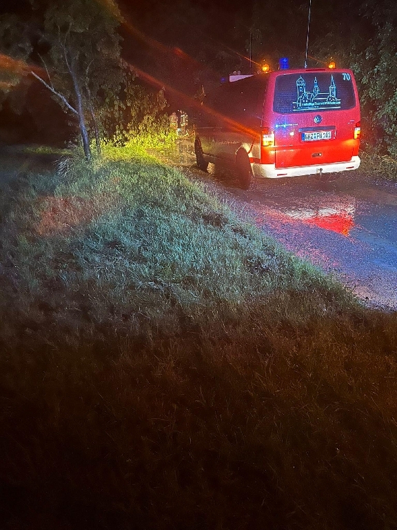 Kurz vor Mitternacht schrillten die Funkmeldeempfänger erneut. Dieses mal ging es in den Ortsteil Brückla. Hier war ein Baum auf die Straße gefallen. Die Mannschaft des Hilfeleistungs- Löschgruppenfahrzeuges beseitigten den Baum zügig und anschließend ins Gerätehaus zurückkehren.