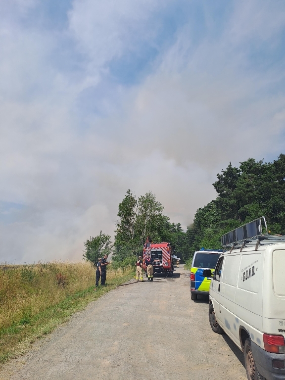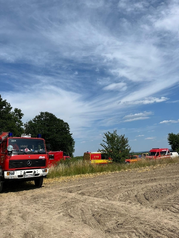 Am frühen Nachmittag des 08.07.2023 wurde das Tanklöschfahrzeug unserer Feuerwehr zu einem großen Feld- und Erntemaschinenbrand nach Staitz alarmiert.