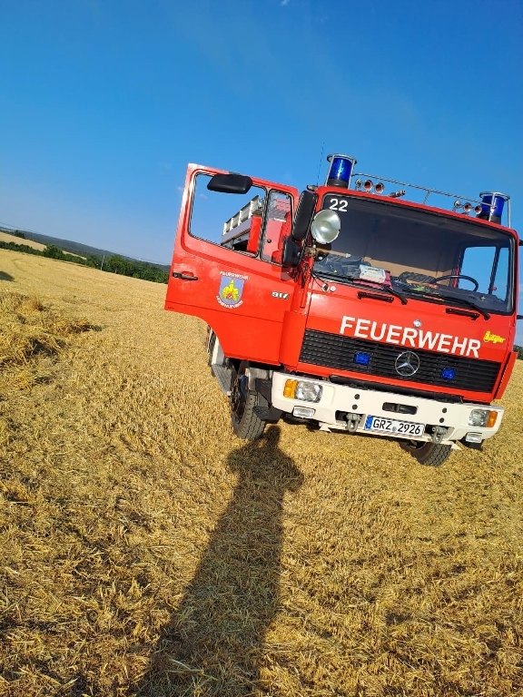 Die Feuerwehr Hohenleuben wurde am Abend des 18.07.2023 zur überörtlichen Löschhilfe zu einem Feldbrand nach Daßlitz, einem Ortsteil von Langenwetzendorf, alarmiert. Bereits bei Ausfahrt im Gerätehaus war eine große Rauchsäule zu sehen. Somit fuhren die Kräfte bereits mit Lage auf Sicht an. Nördlich von Daßlitz breitete sich hier durch den böigen Wind ein Feldbrand rasch in Richtung des Ortes aus.