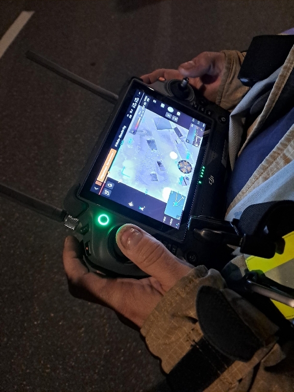 Nach wenigen Minuten startete die Drohne zur Erkundung auf. Nach zirka 10 Minuten konnte in einer in der Nähe befindlichen Gartenanlage ein Brandereigniss festgestellt werden.