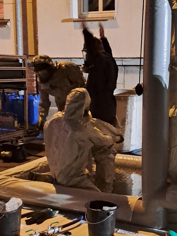 Nachdem wir uns im Bereitstellungsraum sammelten gab es schon kurze Zeit später folgenden Einsatzauftrag. Der Messtrupp bekam die Aufgabe im Gebäude auf die unbekannte Substanz zu messen. Hierbei rüsteten sich die Kameraden mit leichtem CSA und verschiedensten Messgeräten aus. Unterstützt wurden wir hier von den Kameraden der Feuerwehr Münchenbernsdorf, welche mit uns einen gemeinsamen Einsatzabschnitt bildeten.