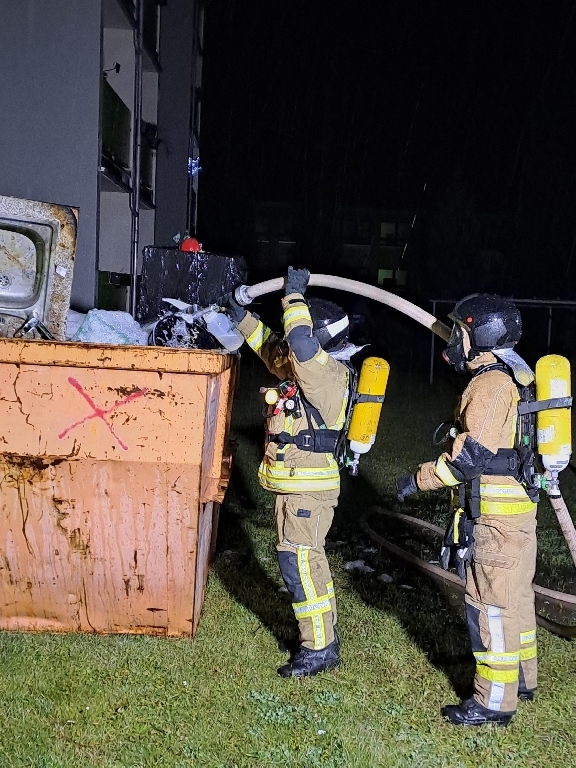 Der Angriffstrupp des HLF's führte so nur noch Restlöscharbeiten durch. Anschließend wurde der Container mit Schaum geflutet.