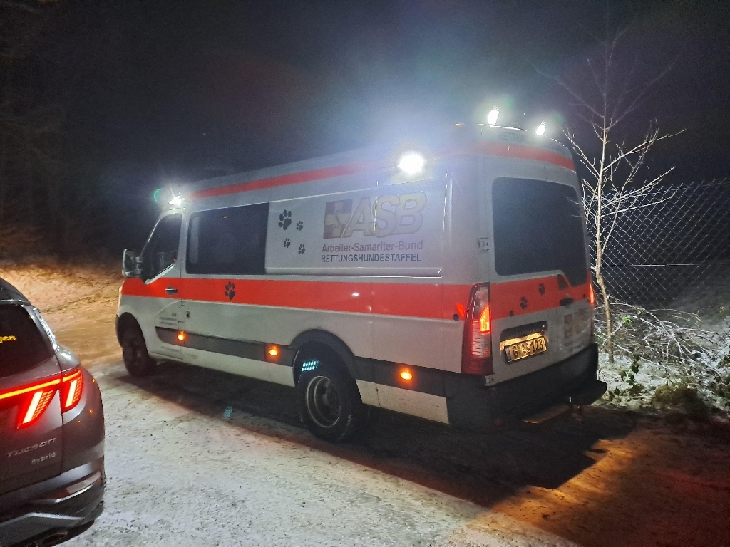 An der Einsatzstelle angekommen wurden wir mit dem ebenfalls alarmierten ASB Rettungshundezug Ostthüringen durch die Polizei in die Lage eingewiesen. Es ging für uns um einen seit dem Vortag vermissten Jungen. Aufgrund von Vorerkrankungen musste davon ausgegangen werden das er sich in akuter Lebensgefahr befindet. Erschwerend hinzu kamen die niedrigen Temperaturen und Schneefall. Somit ging es um jede Minute. Nach knapp einer Stunde konnte das Kind durch einen Hund gefunden werden. Es ging ihm den Umständen entsprechend gut.