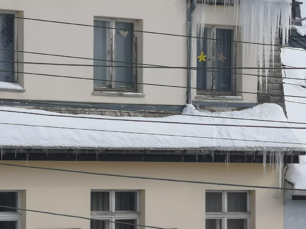 Beseitigung massiver Eiszapfenbildung am Rathaus.
