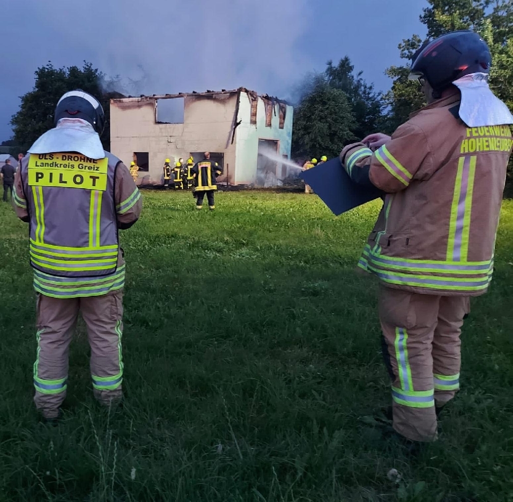 Die Drohneneinheit des Landkreis Greiz wurde am frühen Morgen des 29.06.2021 zu einem Gebäudebrand nach Piesigitz alarmiert. Hier unterstützen wir mit der Drohne aus der Luft. Außerdem wurde der Polizei Amtshilfe geleistet.