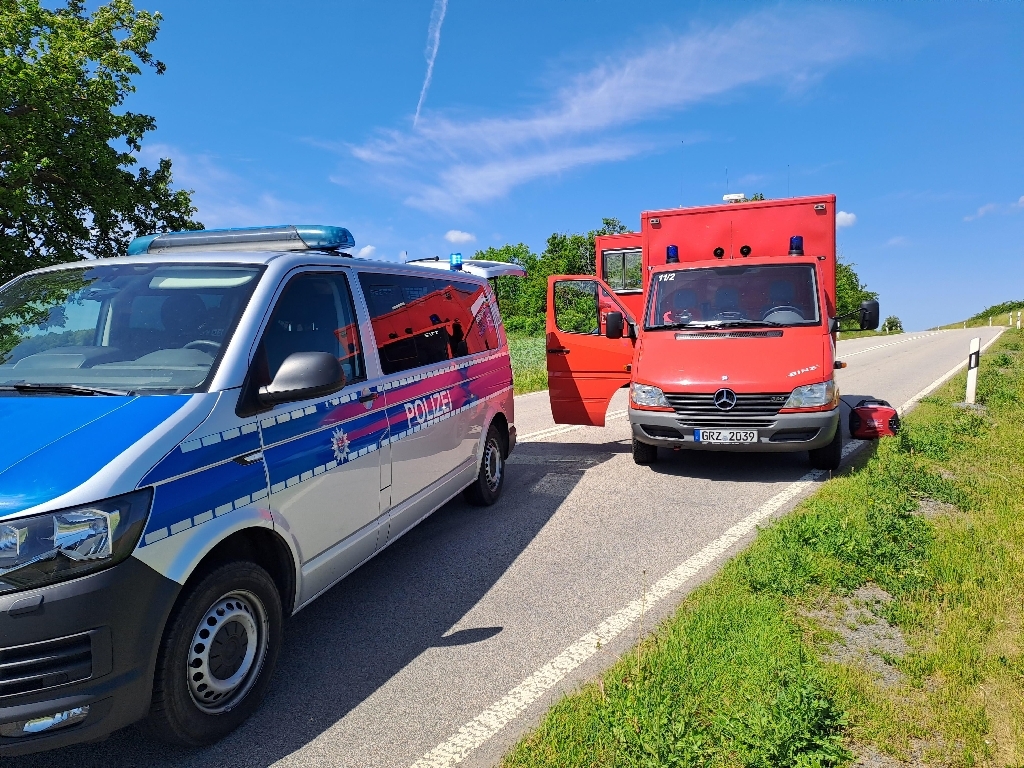 Laut Alarmierung ging es für uns auf die Landstraße L1362 zwischen Ronneburg und Gera Leumnitz. Hier kam es zwischen einem Pkw und einem Motorrad zu einem schweren Unfall.
